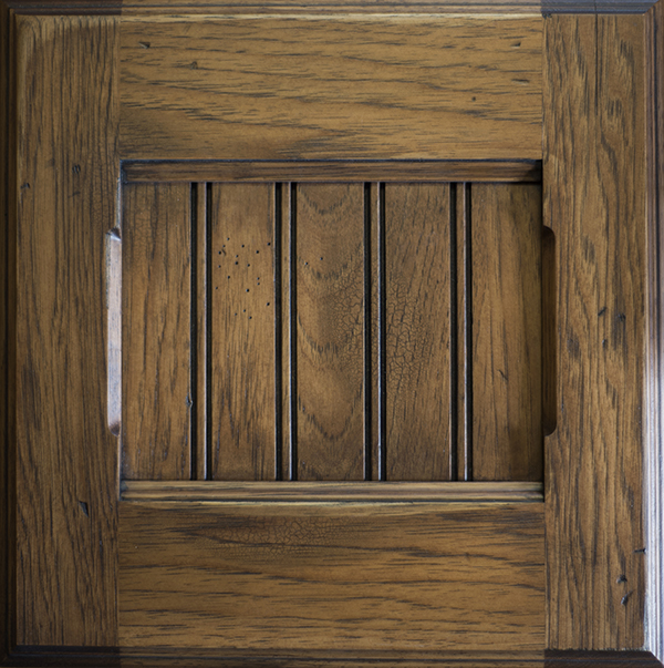Hand-rubbed stained finish with glaze on surface and in creases with catalyzed conversion varnish topcoat